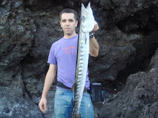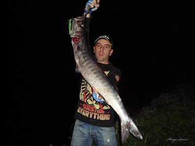 Ainda de dia vi duas perseguições á amostra sempre com as mesmas acções de pesca,parei,pensei...bem está com as condições para uma amostra que gosto muito,primeiro lançamento começo a ver a amostra a chegar e vejo o peixe atrás começo com toques de ponteira num movimento walking e dá-se o ataque,umas corridas e ponho aos pés uma bicuda perto de três kilos.