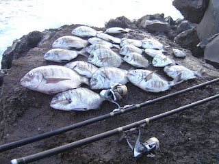 Boa luta um peixe musculado com uma luta digna,o maior que tirei este ano,descanso vejo o mar,e tenho companhia,a malta que pescava ao fundo um pouco afastados de mim,aproximaram-se.
